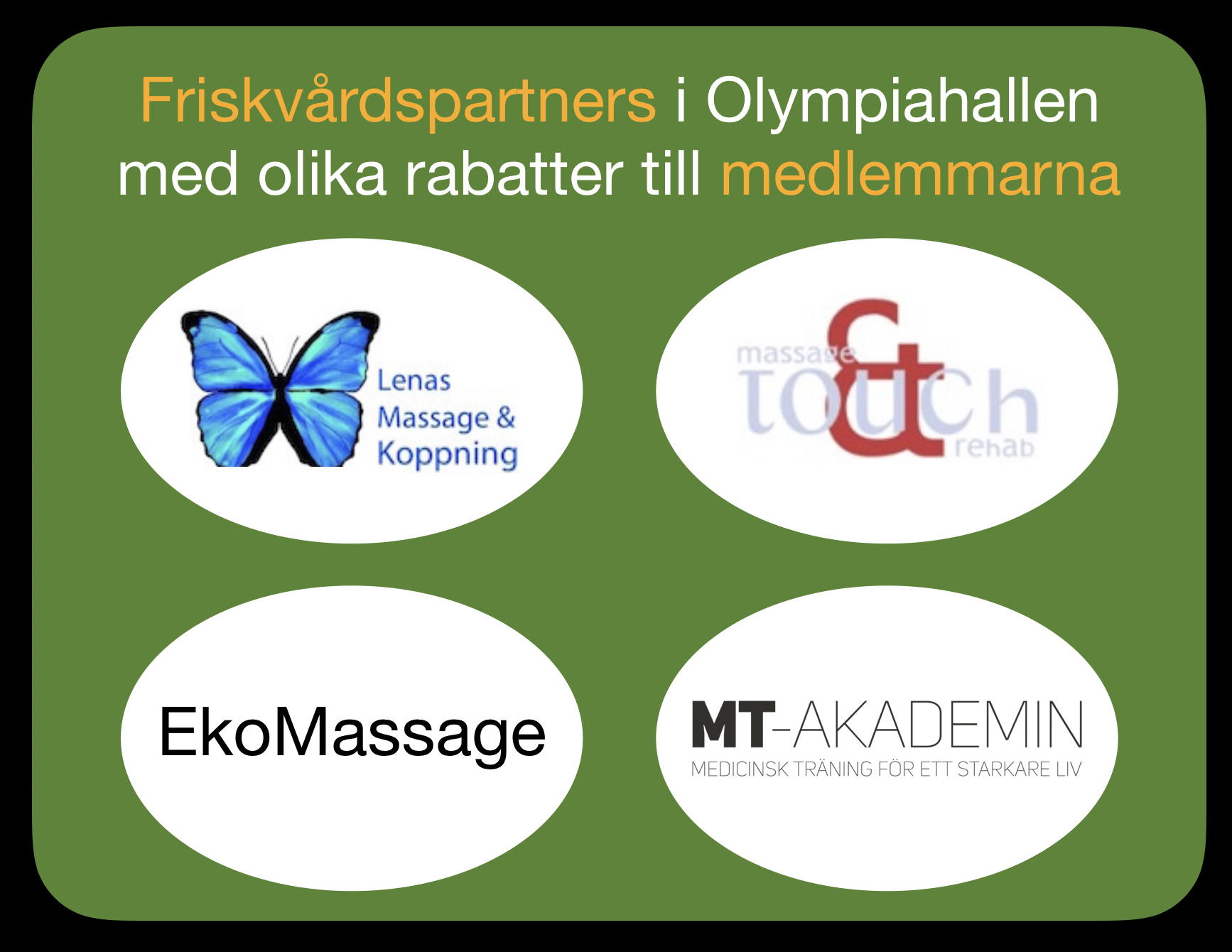 En unik rabattmodell för MEDLEMMAR till idrottsföreningar och friskvårdspartners, med verksamhet i Olympiahallen!